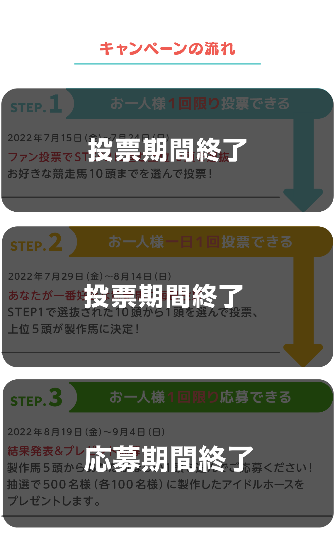 ご応募はチェックボックスにてお好きな競走馬を1頭ご選択ください。